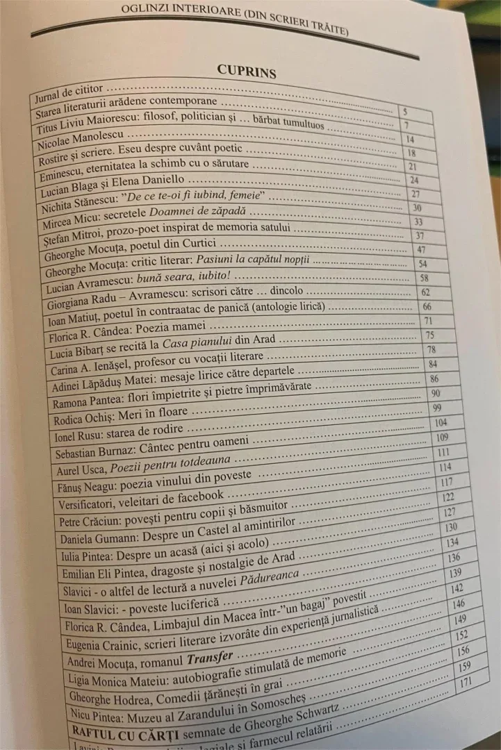 Tipărit cu sprijinul Consiliului Județean Arad prin Biblioteca Județeană A. D. Xenopol, cartea lui ANTON ILICA, OGLINZI INTERIOARE: GÂNDURI TRĂITE, apărută recent la Arad – Gutenberg Univers, urmează altor 5 volume, ce au văzut lumina tiparului în anii 2017, 2020, 2021, 2022, 2023. Cartea reunește texte publicate de ANTON ILICA în presa literară și nu numai, onorând prin personalitatea sa științifică / culturală Uniunea Ziariștilor Profesioniști din România (UZPR). Mărturia lui ANTON ILICA, pe coperta a IV-a a cărții: „Scriu, să nu-mi piară pofta de lectură; citesc, să-mi întrețin sănătatea mintală” este completată în „Jurnal de cititor”, primul text al cărții, în care recunosc intelectualul fin și riguros, dar deopotrivă generos, care precizează: „Eu scriu de plăcere (e adevărat că mulți prieteni îmi trimit cărți vulnerabile pentru prefațare sau recenzare, iar bunătatea mea colegială e sedusă de concesii)… cele peste 30 de volume publicate dau mărturie asupra plăcerii mele de a citi. Fiecare lectură m-a deprins să gândesc, să vorbesc, să scriu, să construiesc proiecte și gânduri din idei, să-mi schimb condiția intelectuală.”